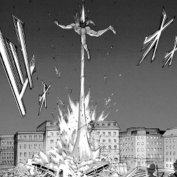 まず最初に描かれたのは、体から巨大な槍を出現させ、エレンを貫く描写。