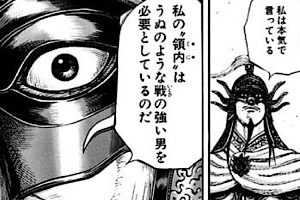 強い武将を敵味方関わらず登用しようとする王翦大将軍。