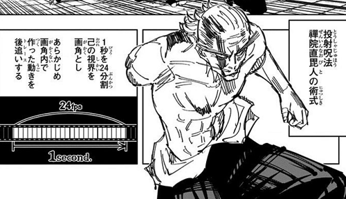 術式は速すぎる動きから察するに禪院直毘人と同じ投射呪法ではないかと推察出来ます。