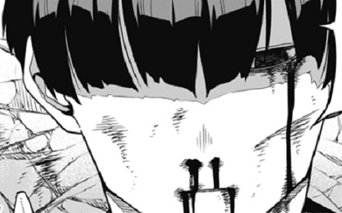目と口と鼻から血を流し倒れ込む保科副隊長です。