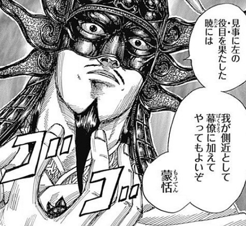 この言葉に田里弥は驚いていますが、王翦はそのまま真っ直ぐいつもの目で蒙恬を見ています。