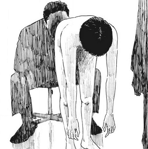 服を脱がされて尻の穴を含めて全てを確認される静一。