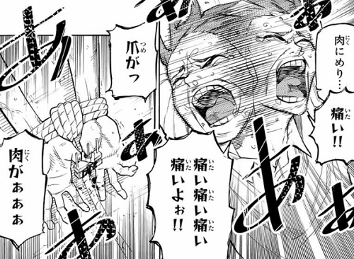 「爪くらいで音を上げるか」と円比呂は叫びますが、こいつがそんなに我慢強いとも思えません。