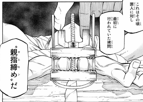 十字架のろくにんネタバレ33話|親指締め(サムキン)という拷問でまず復讐の序章!
