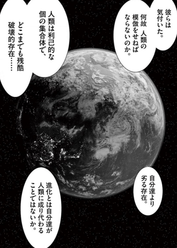 だとすればこの段階で何かを植え付ける事が出来れば、具体的には「人類は生かす価値がある」と認識してくれれば未来を救うことが出来そうな気がしてなりません。