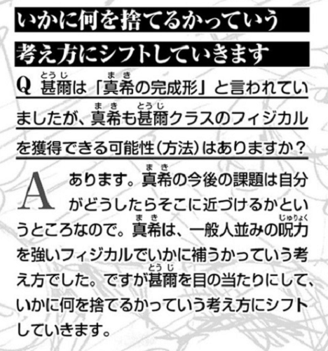 公式ファンブックでも真希が捨てることにシフトして強さを手にしていくことは書かれていました。