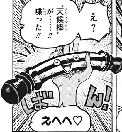 しかしナミの天候棒(クリマタクト)に入り込むことで生き延びました。