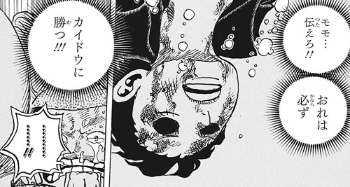 すでにこの段階で意識は無かった様にも見えますが「ルフィの意志」がモモの助に伝えたのでしょう。