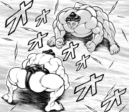 見合う姿勢から完全に相撲スタイルでの開始。