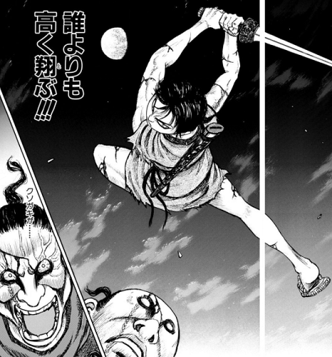 信と岳白公の戦の行方が時間的な制約も出てきたところですが、押し始めた信の剣術によって討ち取る事になるでしょう。