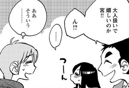 落日のパトス81話で少し大人扱いされただけで喜んでいました。