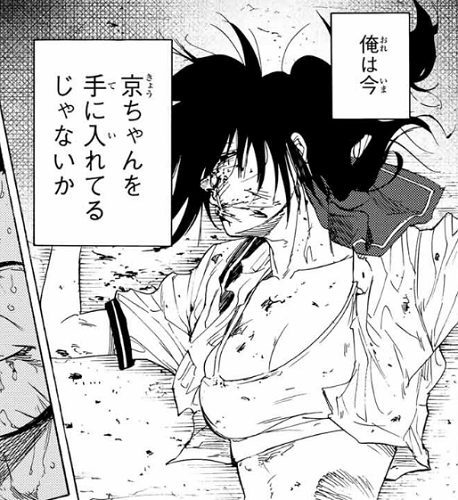 そして漆間を蹴りつけて殴り飛ばしながら殺して京ちゃんのところに行くという久我、めっちゃヤバい人間丸出し。