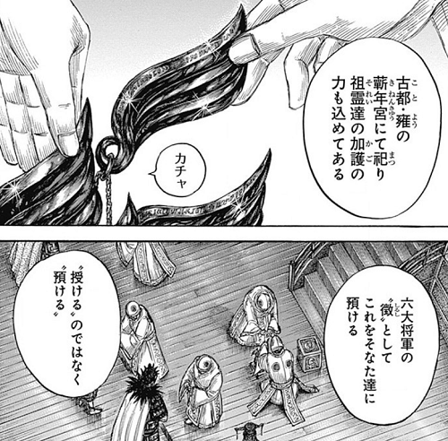 与えられた翼を返却して六大将軍で無くなる桓騎。