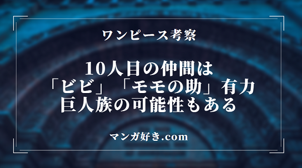 そう考えるとビッグマムでも仲間に引き入れることが出来なかった「巨人族」が最有力の麦わらの一味10人目となるのかもしれません。