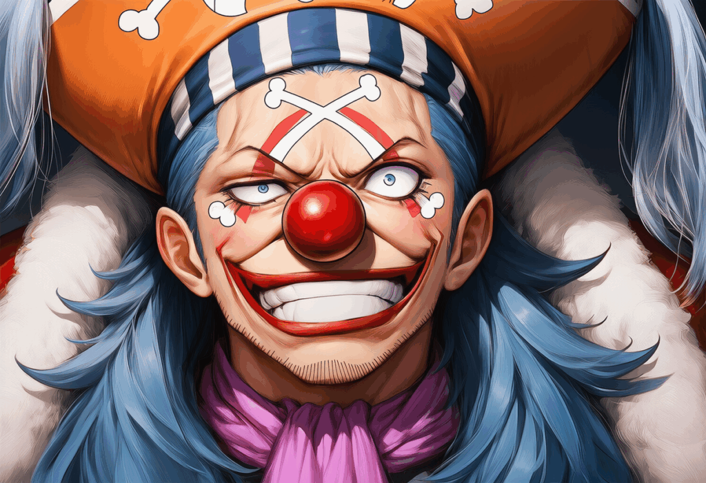 バギーの眼:初登場時から“ギラつき×ハイライト2点”で狂気寄りのコメディ感を演出。